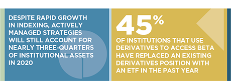 With ETFs slotted into a broadening range of portfolio functions by institutions in North America, Europe, Asia, and Latin America, the category is on a solid trajectory to reach the Greenwich Associates projection that total institutional investment in ETFs will see an additional $300 billion in flows annually by 2020.