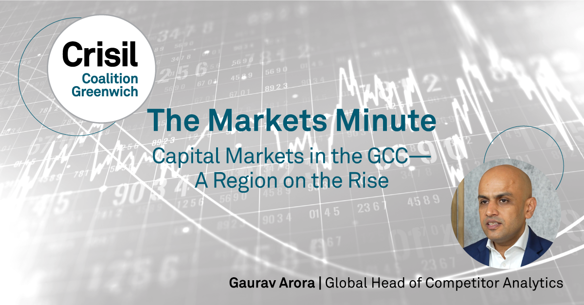 In this week’s edition of The Markets Minute by Crisil Coalition Greenwich, Gaurav Arora discusses how capital markets in the GCC region are booming – $100B in debt issuance in 1H25, Sukuk market surpassing $1T, and record equity trading flows – creating unparalleled opportunities for investors, issuers, and financial institutions.