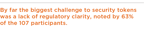 Through our research, we also found that by far the biggest challenge to security tokens was a lack of regulatory clarity, noted by 63% of the 107 participants in our 2019 study. However, this challenge is being addressed (albeit gradually) in the U.S. by the regulators who have allowed for the realization of some recent and significant milestones.