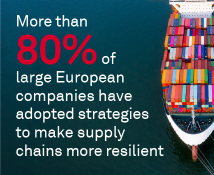 More than 80% of the large European companies taking part in the Coalition Greenwich Voice of Client – 2023 European Large Corporate Trade Finance Study have adopted strategies to make supply chains more resilient. By far the most common change these corporates are making is to diversify their supply chains—a strategy that increasingly includes near-shoring, or the movement of suppliers and other aspects of the supply chain closer to the company’s main production centers.