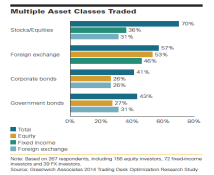 Between August and September 2014, Greenwich Associates interviewed 358 buy-side traders across the globe working on equity, fixed income or foreign exchange trading desks to learn about trading desk budget allocations, trader staffing levels, OMS/EMS/TCA platform usage, and ATS satisfaction levels.