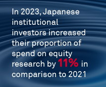 Institutional investors are increasing their proportion of spending on Japanese equity research in the face of a long-awaited surge in Japanese stocks. That’s welcome news for Japanese brokers and research providers, who are hoping for a sustained rebound in revenues after decades of weakness.