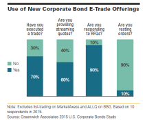 In May of 2015, Greenwich Associates interviewed 13 of the 20 largest corporate bond dealers in the U.S., according to Greenwich Associates Quality Share Leaders data. Also interviewed during the same time period were 112 U.S.-based corporate bond investors. Interview topics included trading platform usage, incentives for trading on particulars venues, and opportunities for and threats to corporate bond-dealing businesses.