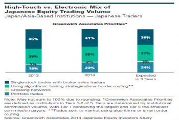 Japan’s large equity brokers are capturing considerable market share with foreign investors active in Japanese equities.