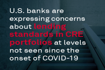 Risk levels and delinquencies are climbing in commercial real estate loans, and U.S. banks are expressing concerns about lending standards in CRE portfolios at levels not seen since the onset of the global pandemic.
