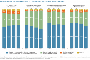 Three global brokers are pulling away from the pack in the Asian equity research/advisory business—a break from historical patterns characterized by a more gradual slope among major competitors.