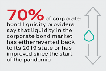 Liquidity in both the investment-grade and high-yield corporate bond markets has either reverted back to its 2019 state or has improved since the start of the pandemic, according to 70% of the corporate bond liquidity providers.