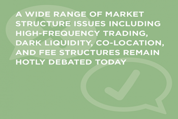 There are many market structure issues that have been much discussed topics since the passage of Reg NMS, such as high-frequency trading, dark liquidity, co-location, and fee structures.