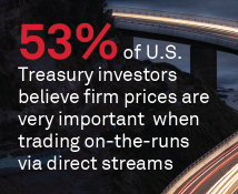 The majority of the U.S. Treasury market is traded electronically. In 2023, 64% of the $755 billion average daily notional volume (ADNV) was executed via a combination of central limit order books (CLOB), request for quote (RFQ) and direct, continuous pricing streams. While the use of RFQ has grown notably in the last five years, now handling more volume on a notional basis than CLOBs and streams combined, the working assumption of many in the market has been that trading via direct streams was the future. In fact, a Coalition Greenwich report in 20191 called streaming “the best of both worlds.”