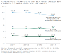 Indian banks are making this progress at a time when large companies are cutting down on the number of banks with which they do business overall. During the global financial crisis, Indian companies—like companies the world over—sought out new bank relationships as a means of addressing counterparty risk and ensuring uninterrupted access to critical credit and banking services.