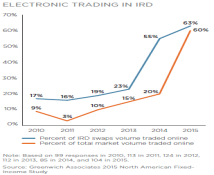The business of interest-rate swaps trading is rapidly moving to electronic platforms. Sixty percent of notional client swap trading volume in the U.S. this year is being executed electronically - up from just 20% in 2014.