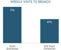 Reports of the death of the bank branch have been greatly exaggerated. In The Future of Banking: 2025 report, our research shows 71% of small businesses and 47% of mid-sized companies still visit the branch weekly for important banking services.