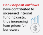 Although the U.S. banking industry has, at least until now, avoided a much-feared run on small banks, steady deposit outflows are increasing funding costs for banks of all sizes and driving up the price of commercial loans.