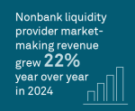 Non-bank liquidity providers earned a combined $25.6 billion in revenues from market making in equities, fixed income, currencies, and commodities last year—a 22% increase over 2023.