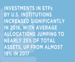 Sixty-two percent of U.S. insurance companies are now utilizing exchange-traded funds (ETFs) in their general accounts for reserve and surplus exposures, and among those who have not yet embraced ETFs, 82% expect their organizations will reconsider that decision in the next three years.
