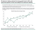 Almost three quarters of global foreign exchange trading volumes (74%) were executed through electronic systems last year, up from 71% in 2012, according to a new report, As e-FX Market Matures, Incremental Growth Driven By Smaller Institutions, from Greenwich Associates that analyzes trends in non-interbank, client-generated FX trading volumes.